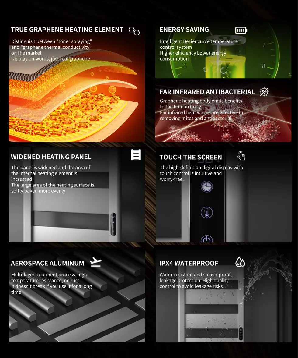 • 135W Rack de toalha elétrica de grafeno135W Rack de toalha elétrica de grafeno